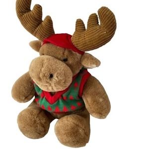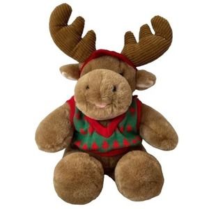 Vintage Commonwealth Moose Plush Christmas Tree Sweater Stuffed Animal brown Decor Toy 17inches