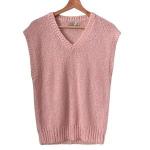 Vintage Compositions for Petites Pink Knitted Sleeveless Sweater Vest in One Size