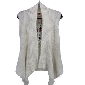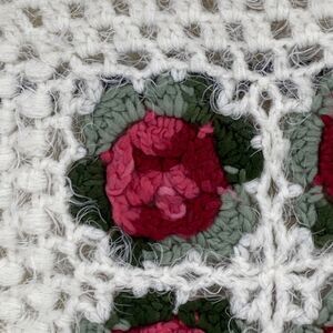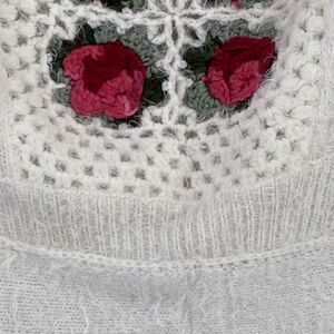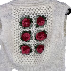 Vintage Concept Floral Rose Crochet Square Fuzzy Sweater Vest White