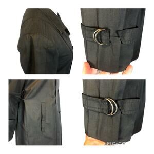 Vintage Concept black double breasted stand collar belted trench coat size large