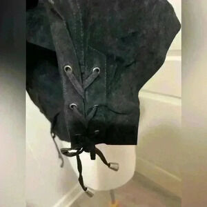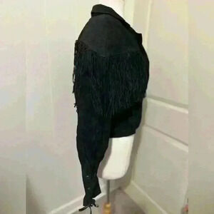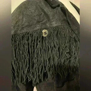 Vintage Concho Leather Suede Black Fringe Cowboy Western Festival Hippie Boho