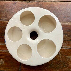 @thriftshopkat hi 👋🏻 would you please share a picture with a ruler stretched across the top of this, where I can see about how wide the holes are? I thought this piece would be much larger from the picture, but you are saying the whole thing is only 6 inches across.? And this is for sure a blue willow pattern? I’m interested in this for my mother so needing to find out more. I’m not sure what kind of condiments could fit in small holes, do you know?