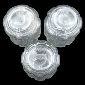 • Three clear cut glass jars