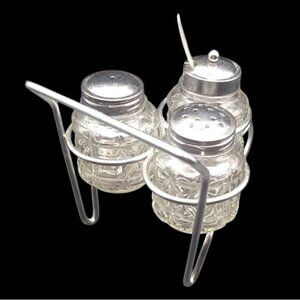 Serving your condiments has never been this wheel-y fun. This quirky vintage set is ready to roll into your kitchen or picnic and steal the show.
