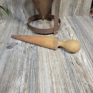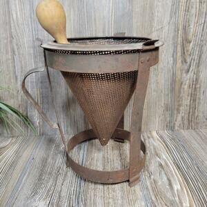 Vintage Cone Shaped Sieve & Pestle, Canning Strainer Colander, Rusty