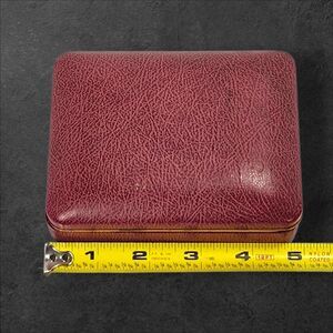 Packaging: Textured burgundy case with gold trim and satin lining lining has minor staining consistent with age.