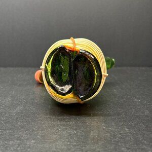 This vintage glass oil and vinegar cruet features a unique conjoined design with a striking green hue. Ideal for adding a retro touch to your kitchen or dining area, this 5.5'' tall decanter is both functional and decorative.