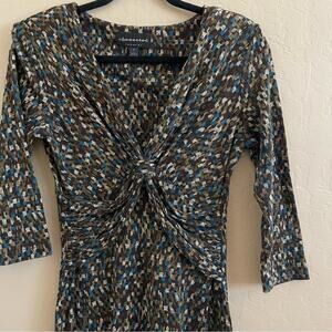Vintage Connected Apparel Brown Wrap Printed Sweater Dress