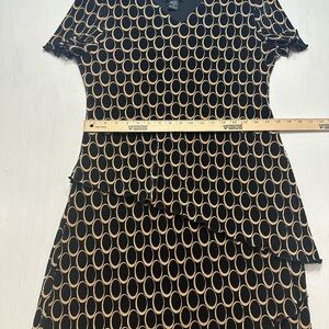 Vintage Connected Apparel Dress Size 16 Black Beige Circle Print Tiered Hem