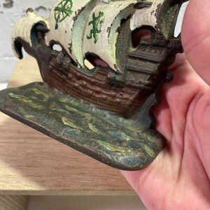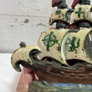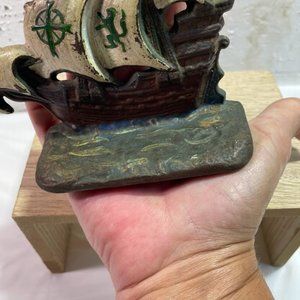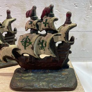 Vintage Connecticut Foundry Pirate Galleon Cast Iron Painted Bookends Pirates