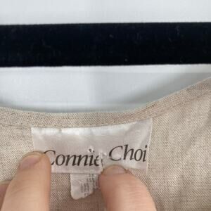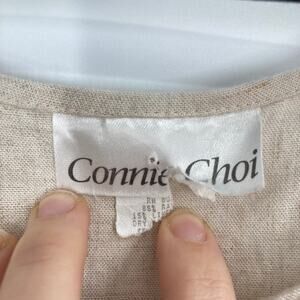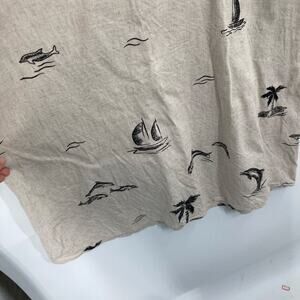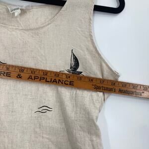 Vintage Connie Choi Beige Black Linen Maxi Dress Dolphin Boat Print Coastal SM