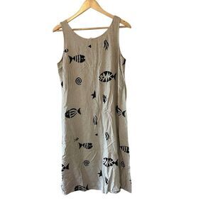 Vintage Connie Choi linen blend lightweight beachy print dress size Large