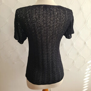 Vintage Conrad C Open Knit Tee Pullover / Black Knit / Tagged Medium