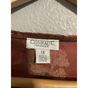 Vintage Conrad C Womens Top 1X Red Floral Stretch Long Sleeve Artsy Deadstock