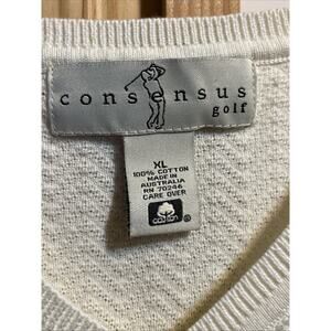 Vintage Consensus Sportswear Golf Sweater Vest Men’s XL White Cotton Pullover