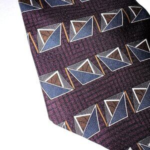Vintage Conte di Milano Necktie 100% Silk Art Deco Geometric USA Made X-Long 63”