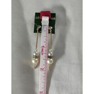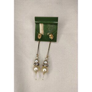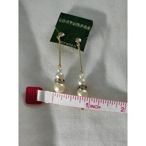 Vintage Contempra Pierced Earrings Faux Pearl Rhinestone Accents Dangle Drop Gol