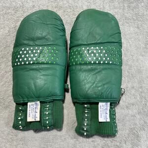 Vintage Contender Mens Large Green Leather Ski Snowboard Mitts Made in Korea