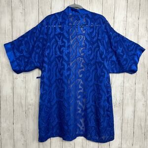 Vintage Contessa Di Roma Blue Sheer Short Sleeve Tie Close Robe Kimono Medium