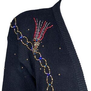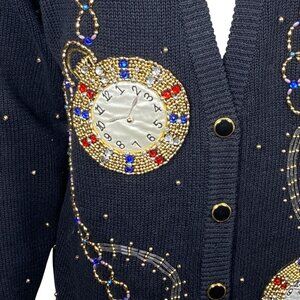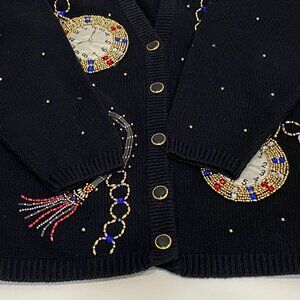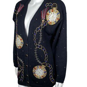 Vintage Contessa Visconte Pocket Watch Cardigan Sweater Size L Beaded Festive