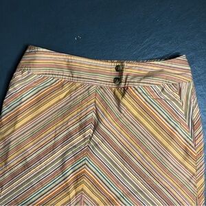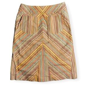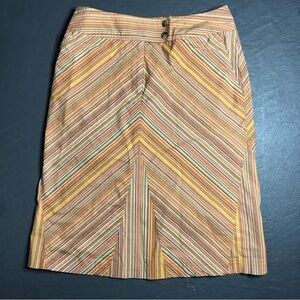 Vintage Context High Waisted Striped Orange Cotton Button Pocket Skirt Size 2
