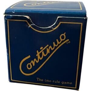 Here's a delightful find for game collectors and puzzle enthusiasts! This vintage Continuo board game comes complete in its original navy blue box with elegant gold lettering. Dubbed "the one-rule game," this classic strategy game includes all the colorful tiles featuring red, yellow, green, and blue squares that made it such a beloved brain teaser. The box shows authentic vintage character with some wear on the edges, which only adds to its nostalgic charm. Inside you'll find the instruction booklet still intact, showing all the gameplay details and color reference chart. Perfect condition tiles ready for hours of strategic fun. Whether you're a serious board game collector, vintage toy hunter, or someone who loves retro games night, this complete set is ready to challenge and entertain!