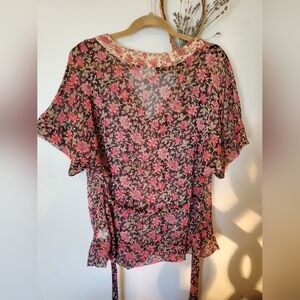 ♡Vintage CONVERSE ONE STAR♡ Sheer button down gorgeous floral print top, Indian, Made in india, Belted waist can wear open or buttoned up. Runs smaller per usual Vintage sizing