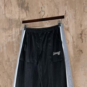 Vintage Converse Sweatpants Jet Black Polyester Mesh Grey White Relaxed Fit 90s