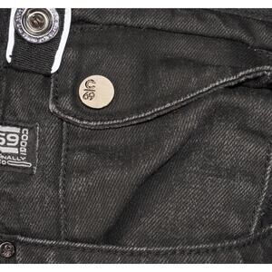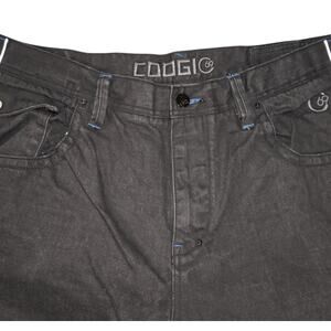 Vintage Coogi Australia C69 black denim jeans featuring embroidered “Coogi Australia Nineteen Hundred Sixty Nine” branding on the back pocket. Made of 100% cotton with silver-tone C69 hardware, signature printed waistband, and a relaxed straight fit with slight flare leg. Classic mid-2000s hip hop streetwear style — perfect for Y2K or retro outfits.
