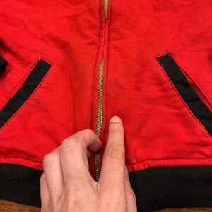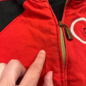 Good condition- no holes. A couple small light spots as shown in the pictures. Super cute. Vintage Coogi Varsity style Jacket Size 4T Boys Red Black.