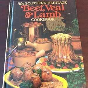 This is a vintage cookbook titled 'Beef, Veal & Lamb. It is part of The Southern Heritage Cookbook Series published by Oxmoor House in 1983. This vintage series of cookbooks was distributed by Southern Living. It is in very good condition with minor wear to the edges and corners from shelving. The pages are clean and crisp.