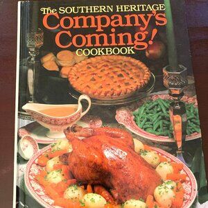 This is a vintage cookbook titled 'Company's Coming'. It is part of The Southern Heritage Cookbook series published by Oxmoor House in 1983. This vintage series of cookbooks was distributed by Southern Living. It is in very good condition with minor wear to the edges and corners from shelving. Pages are clean and crisp