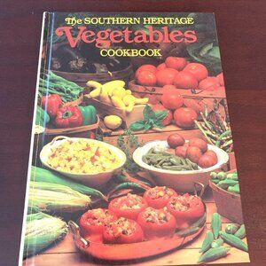 This is a vintage cookbook titled 'Vegetables'. It is part of The Southern Heritage Cookbook series published by Oxmoor House in 1983. This vintage series of cookbooks was distributed by Southern Living. It is in very good condition with minor wear to the edges and corners from shelving. The pages are clean and crisp.