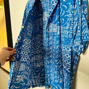 Vintage Cooke Street Hawaiian Blue Tropical Button Down Collared Shirt Size L