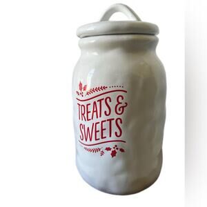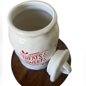 Treats and Sweets Holiday Christmas White Ceramic Cookie Jar with Lid.