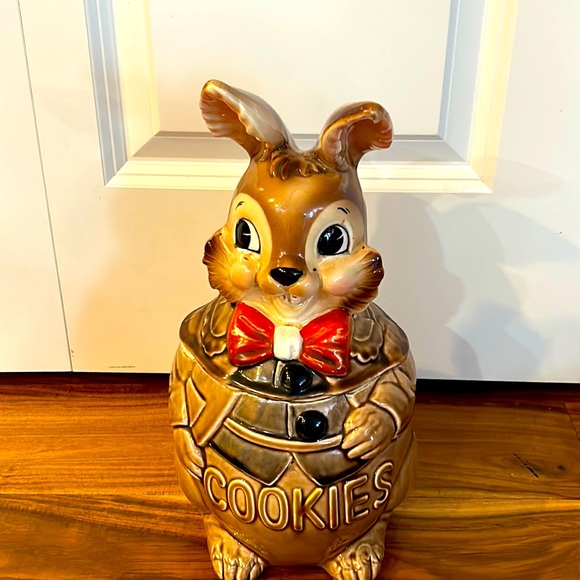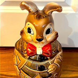 Vintage Peter Rabbit like Cookie Jar made in Japan. Peter Rabbit has his best red bow tie on, ready for his Special Day. Cute black buttons (2) on is jacket.