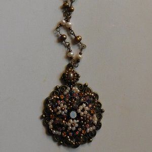 Medallion measures approx. 2" x 1/2" - necklace unclasped approx. 20" long. The Cookie Lee tag is by the clasp