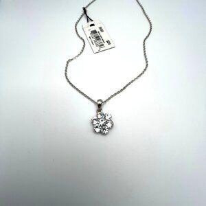 Vintage Cookie Lee Necklace Genuine Crystal Flower Pendant Silver Tone
