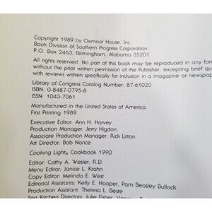 Vintage Cooking Light hardcover book cookbook first Printing 1989