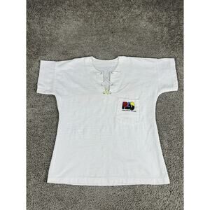 Vintage Copacabana Rio Shirt Mens Large White Brazil Souvenir Lace Up Beach 90s