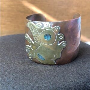 Vintage Copper Abalone Brass Inlay Cuff Bracelet