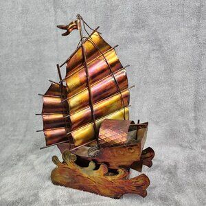 Vintage Copper Art Musical Kinetic Sailing Ship Plays Beyond the Reef Music
