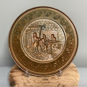 Crafted in what is either a Copper or Brass and ready to hang on the wall or a stand.