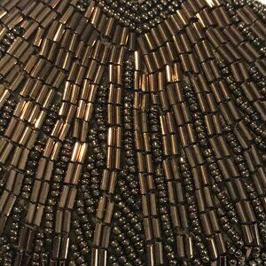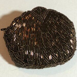 Vintage Copper Bronze Brown Beaded Bag / Small Zip Clutch