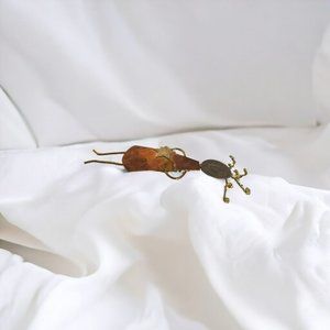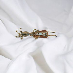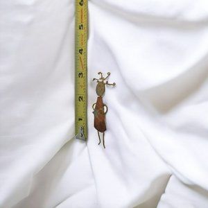 Older southwestern copper brooch measuring about 3" tall with a figurine holding a star in one hand and a heart in the other hand. This brooch has some surface wear. We have not cleaned this piece of jewelry to keep it's vintage look intact, copper can easily be cleaned with vinegar or other common cleaners of the new owner desires.