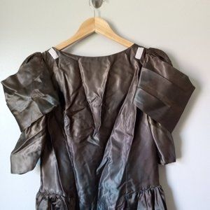 Unknown Brand. Was used in the theatre department. Copper jungle green in color. Size 14. Does have velcro attached to the shoulders. Would be great for cosplay or costume design. No other flaws nor damage. No fading. Great condition.