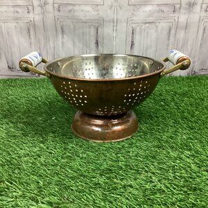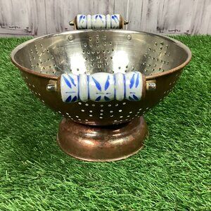 Vintage Copper Colander Tin Lined Porcelain Handles