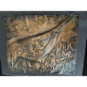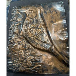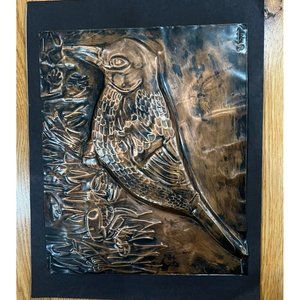 This is a handmade copper punch picture of a bird. This is the copper sheet only. It is not in a frame. It is signed by Lisa R. It measures approximately 8 3/4” x 7.5”. It comes stapled to a sheet of cardboard awaiting your frame of choice. Thank you for viewing. (Cab0210242PM).