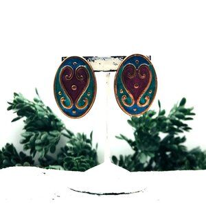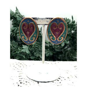 These earrings feature a vintage design with vibrant enamel detailing and a copper base, offering a timeless yet colorful accessory.