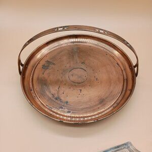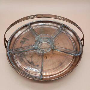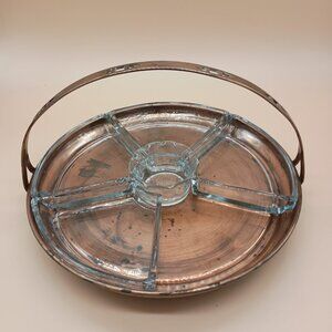 Vintage Copper & Glass Segmented Hors D'oeuvres Serving Tray w/ Handle READ